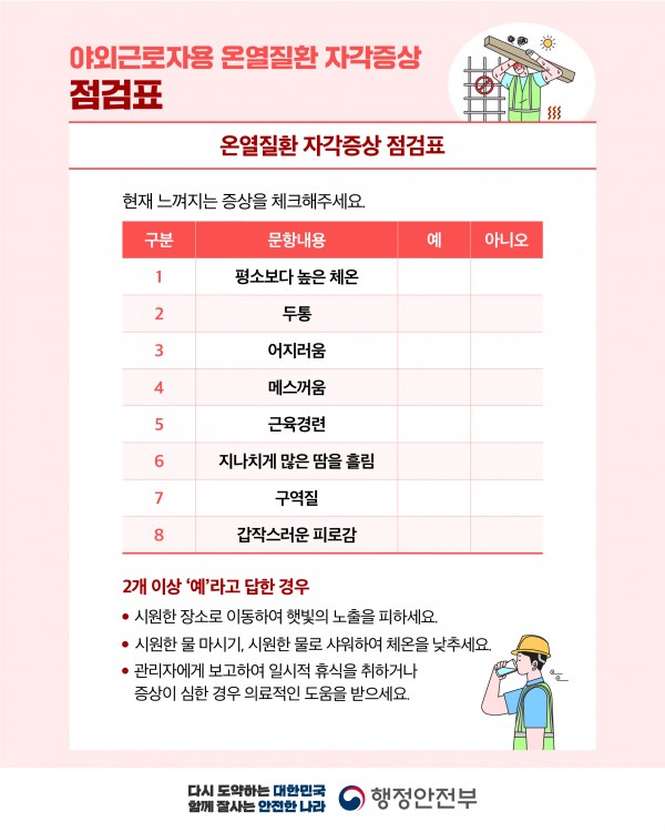 혹서기_야외근로자용 온열질환 특성 자가진단표