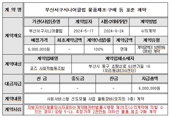 부산서구시니어클럽 2024년 수의 계약 정보 공개