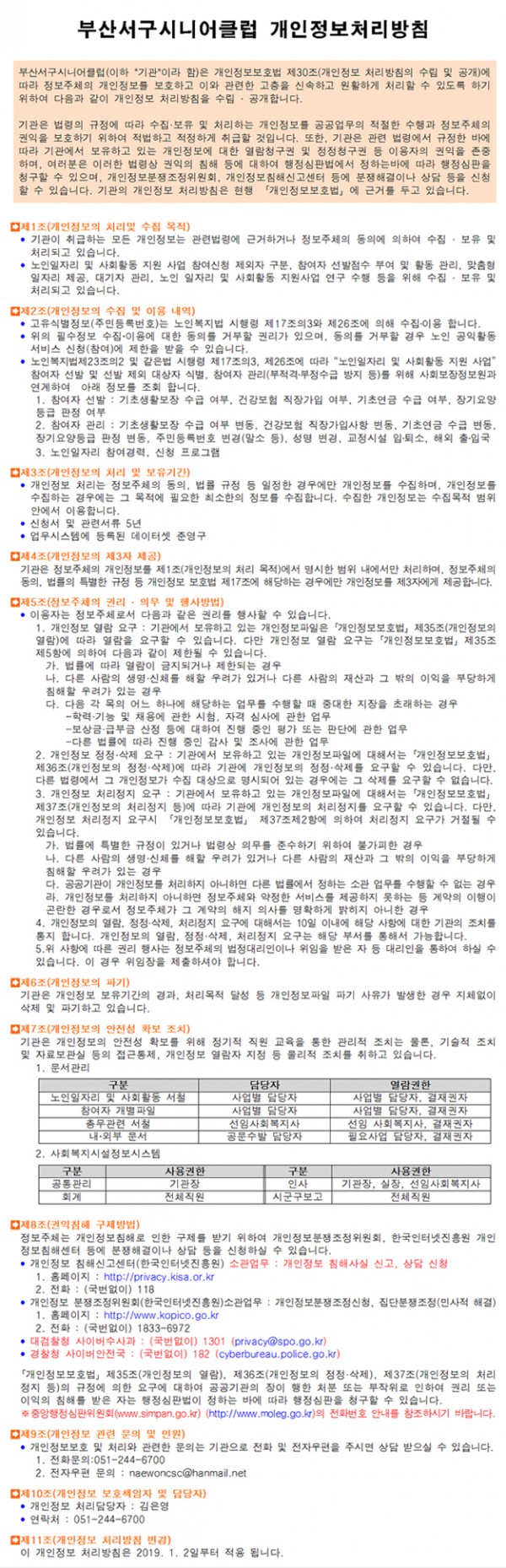 부산서구시니어클럽 개인정보처리 방침