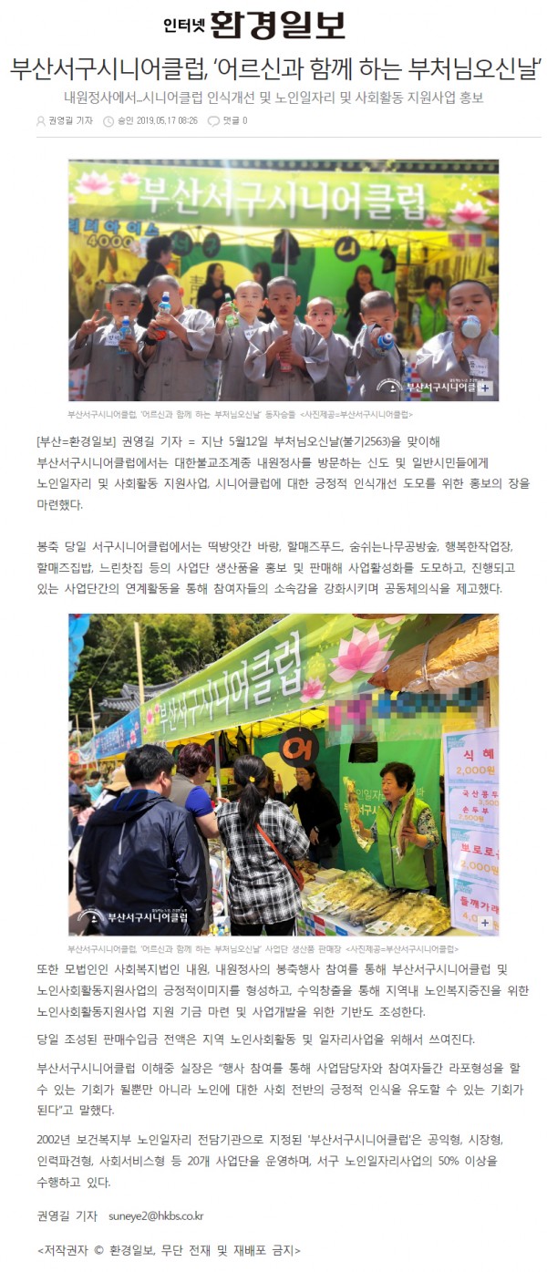 [언론보도:환경일보] 부산서구시니어클럽,'어르신과 함께하는 부처님 오신날' 페이지 정보 작성자 부산서구시니어클럽 댓글 0건 조회 7,533회 작성일 19-05-17 13:15 본문 환경일보 2019년 05년 17일 권영길 기자 [기사원본 링크] http://www.hkbs.co.kr/news/articleView.html?idxno=514035 목록 이전글[언론보도:환경일보]부산서구시니어클럽,'노인일자리사업 생산품'홍보 19.07.02 다음글[언론보도:환경일보] 우리는 서로가 단짝 친구입니다! 19.05.07 댓글목록 댓글목록 등록된 댓글이 없습니다.