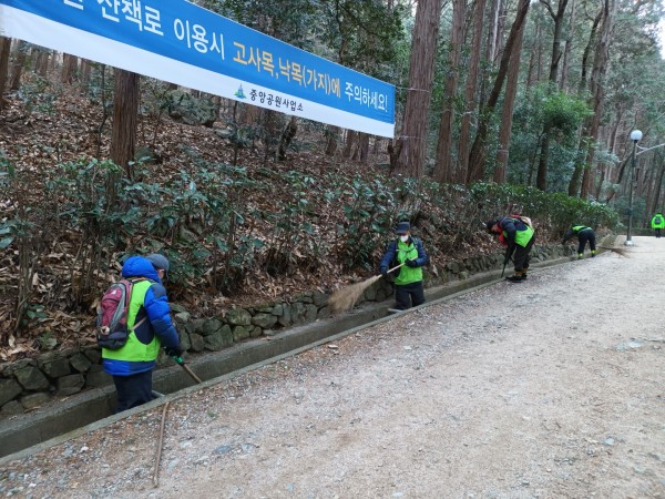 답답한 도시 속 자연을 느끼며 여유롭게 힐링을 할 수 있는 대신공원 , 이 곳을 찾는 시민들이 안전하고 청결한 휴식을 취할 수 있도록 어르신들이 열심히 노력하고 있습니다. 많이 찾아주세요.