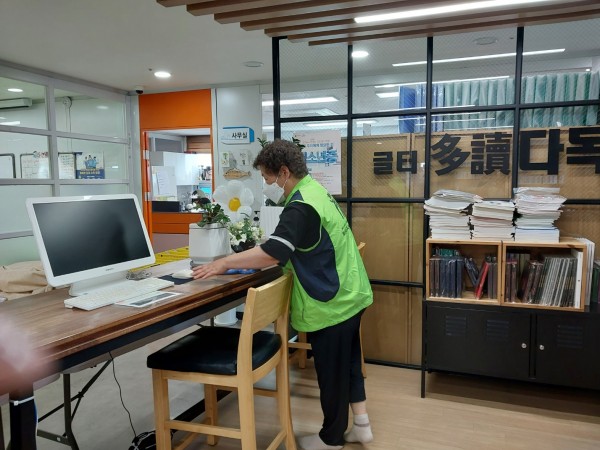 시니어청소년시설지원사업단 참여자 서구청소년문화의집 내 환경정비 하는 사진입니다.